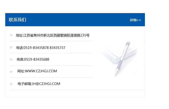 地址:常州市新北區友邦商務大廈1幢16、17層  電話:0519-85101652  傳真:0519-85112595  郵編:213022  網址:www.cz-jiayue_cn.hkjueli.com  郵箱:xiajifengaa@163.com
